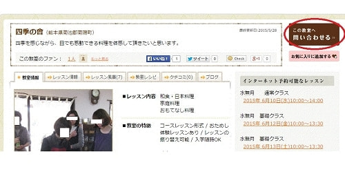 「この教室へ問い合わせる」をクリック